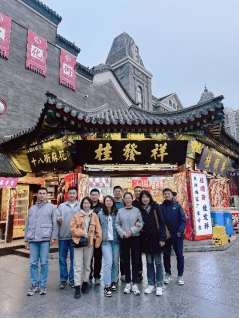 实践活动中,研学团队从古文化街南门进入,先由史洋老师为同学们讲述“津门故里”的由来、沽上艺苑的文化以及天津卫的前世今生,号召同学们要深入挖掘天津历史文化资源,传承津沽文脉,共建城市文化,以习近平文化思想为指引,肩负新时代新的文化使命,在守正创新中推动文化强市建设和文化事业高质量发展。随后,同学们进行分组,依次探店习近平总书记视察过的桂发祥十八街麻花、果仁张、泥人张、杨柳青年画等特色店铺,详细了解这些老字号的产品种类、销售模式和传统文化,探寻津沽文化中蕴藏的“发展密码”。