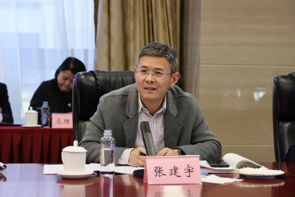 在主题演讲和嘉宾互动发言阶段,商学院院长张建宇教授从学院学科建设、科学研究、咨政建言、专业发展、学生成长等方面分享了学院围绕愿景和使命的经验和做法,并从技术的革命性突破、生产要素的创新配置和制造企业的转型升级上解读了对新质生产力的理解,结合大数据、人工智能在与会企业中的广泛应用,发出产研、产教和产学融合进一步凝练中国管理智慧的倡议。