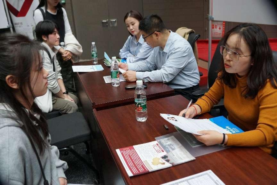 在双选会现场,各用人单位通过设立展板、发放宣传手册、谈心交流等方式展示企业文化与岗位需求。同学们怀揣着浓厚的兴趣,仔细阅读用人单位的宣传手册,携带提前准备好的简历,把握机会与用人单位积极沟通。在双向交流过程中,各单位充分了解学生的求职意愿、实习经历、专业水平,同学们也在沟通的过程中进一步了解了行业发展状况、薪资待遇水平、用人单位需求,进一步瞄定了求职目标。