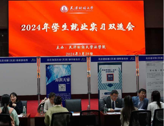 为深入贯彻落实习近平总书记视察天津重要讲话精神,有效落实教育部、天津市教委及学校做好2024届毕业生就业工作的相关要求,促进用人单位需求与学校人才供给的精准对接,提高毕业生就业率,提升在校生实习实践能力水平,法学院抢抓春季开学后促就业工作关键期,充分挖掘优秀校友、专业教师等各方面资源,于2024年3月29日在G座东厅举办了法学院2024年学生就业实习双选会。校党委副书记马岩,副校长李新涛,法学院党委书记陈方,院长张勤,党委副书记、纪委书记田雅志,副院长柴松霞,副院长冯博,学生工作办公室辅导员等到场与各用人单位沟通交流,助力广大法学学子顺利就业。
