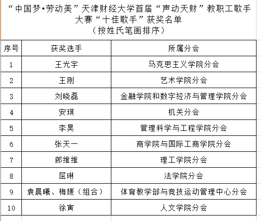 为全面学习贯彻习近平总书记关于工人阶级和工会工作的重要论述,认真落实中国工会十八大和天津工会十八大精神,进一步丰富教职工校园文化生活,充分展示教职工向上向善的精神风貌,用歌声献礼新中国成立75周年,我校举办的“中国梦·劳动美”天津财经大学首届“声动天财”教职工歌手大赛于4月12日在天财体育馆圆满落幕,校党委副书记、工会主席马岩出席活动并为获奖选手颁奖。