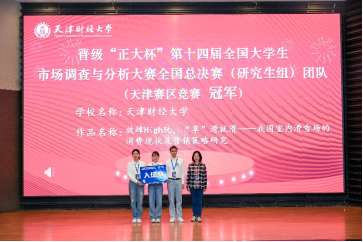 最终,本次比赛共有4支队伍成功晋级全国大学生市场调查与分析大赛全国总决赛(研究生组),全国总决赛(研究生组)三等奖推荐名单共14支队伍,天津赛区竞赛(研究生组)天津市一等奖共17支队伍。
