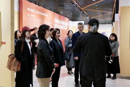 双方就如何推动美育教育-戏剧艺术进校园,进一步加强校企双方深度合作,进行了积极探讨和沟通,确定了近期合作内容,为今后的深入合作奠定了良好的基础。会谈结束后,天津人民艺术剧院一行参观了艺术学院的教学环境和教学成果展,对艺术学院取得的教学成果和师生创作的艺术作品给予了高度评价。