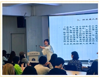 迟老师以生动的案例和扎实的专业知识,带领大家了解戏剧、走近戏剧。从戏剧的诞生发展,到演员的声台形表、舞台观众的情绪调动,课程内容饱满丰富。结合天津人民艺术剧院发展历史,迟老师讲述了天津人艺的代表剧目,分享了自己在戏剧领域的实践经验。传递“戏比天大”的理念,让在场同学们更加真切的感受到戏剧的力量。