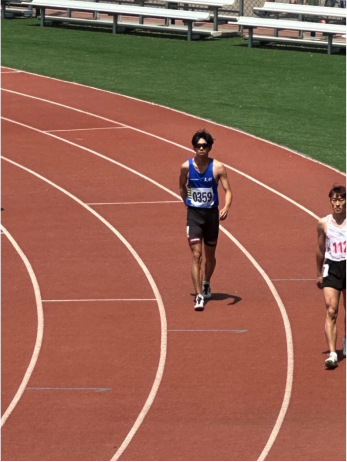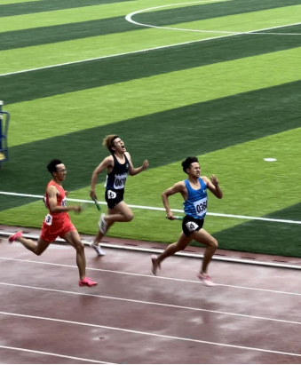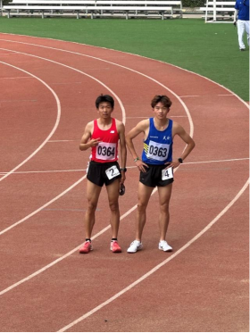 上图身着蓝色天财上衣的是我校男子高水平组800米冠军刘卓航