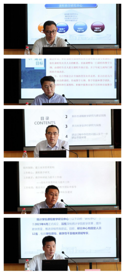 会上,首批5个课程教学研究中心负责人就中心整体建设情况、建设任务完成情况、标志性成果完成情况、建设过程中存在的问题以及下一步建设思路举措和保障措施等方面进行了汇报。