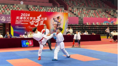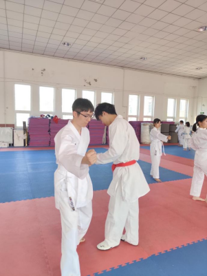 2024年6月2日天津市大学生空手道比赛在天津城建大学举行。我校跆拳道队勇担重任、主动申请参加新项目比赛。从接到比赛通知到走上赛场,跆拳道校队面对时间紧迫和经验缺乏的双重挑战,对此,跆拳道队充分挖掘两个项目的相近性,从教练到队员积极投身空手道的系统性训练,抓紧一切时间训练并寻求专业指导。最终,在大家的不懈努力下,跨项目出战的跆拳道队在比赛中表现出色,取得了令人瞩目的成绩。