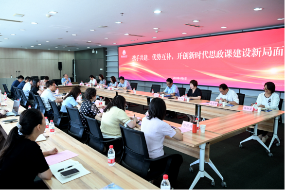 签约仪式后召开了研讨座谈会。座谈会由马克思主义学院院长杨书文教授主持。会上,河北区委组织部副部长徐娜、党校副校长刘鑫、党校教务科科长陈军,河西区委组织部副部长赵剑锋、党校马克思主义理论教研室主任屈晓亮、党校理研室副主任吕圣,马克思主义学院副院长陈国绪等7位同志分别发言,就校地党建共建、资源共享、课程开发、课题研究等方面交换了意见,围绕如何强化“党建+思政”协同发展、用好两区丰富的红色资源“大课堂”、推动“大思政课”建设等方面进行充分交流。