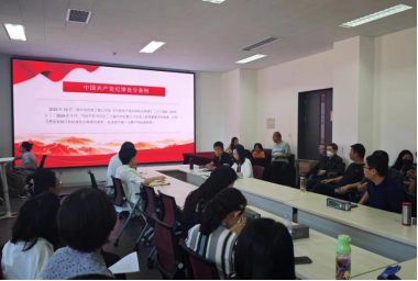 学院各党支部依托“三会一课”、主题党日活动,通过交流研讨、宣讲阐释、案例教学等方式组织全体党员集体学习。同时,加强党员自学,全体党员充分利用八小时外空闲时间自行研读党章和《条例》,延伸学习党的纪律相关党内法规,营造全员参与、人人学纪的浓厚氛围。