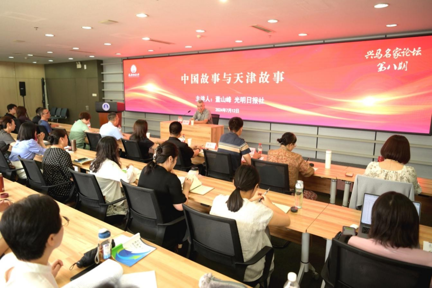 为深入贯彻落实习近平总书记对学校思政课建设重要指示精神和视察天津重要讲话精神,进一步提升思政课教师讲好天津故事、中国故事的能力和水平,在推动思政课建设内涵式发展上善作善成,7月12日上午,学院邀请《光明日报》天津站站长、高级记者董山峰作“中国故事与天津故事”专题讲座。