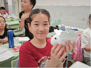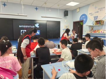为了让同学们理解人类进化史的残酷与和平的重要性,志愿者们引导同学们制作象征团结的和平鸽。在制作过程中,同学们利用塑料瓶、黏土和筷子,动手创造出一只只栩栩如生的和平鸽,体验了从设计到实现的全过程。