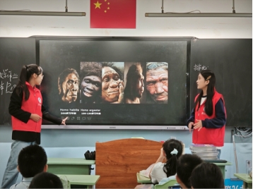 志愿者们还拓展了关于人类与猿类亲缘关系的知识,讲述了约6500万年前大型陨石撞击地球导致恐龙灭绝的事件,以及哺乳动物如何逃过劫难并迅速进化,最终形成了现代人类。