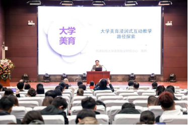 在大会学术交流环节,李然副教授做了题为《大学美育浸润式互动教学路径探索》的主题发言,针对目前美育教学中的难点,提出了相应对的改革举措,分享了我校美育教学实践改革的经验,获得在场嘉宾的高度认可。