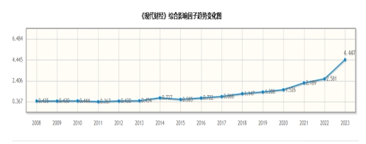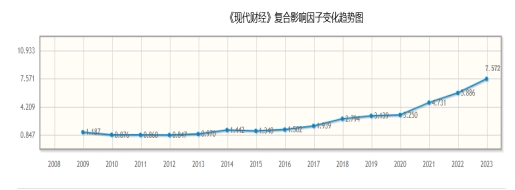 在学术研究领域,影响因子是衡量其学术质量、学术贡献及在行业内外受认可程度的重要指标之一。数据显示,《现代财经》复合影响因子从2017年的1.94到2023年的7.57,增幅289.7%;综合影响因子从2018年的1.15到2023年的4.45,增幅287%,学科排名从2023年18位进入前10。这一成绩的取得,不仅体现了《现代财经》在学术界的认可度和影响力,也反映了天津财经大学在建设一流期刊方面的成效,同时还充分展示了天财期刊社持续追求卓越、不断提升学术品质,打造品牌期刊的坚定决心与不懈努力。
