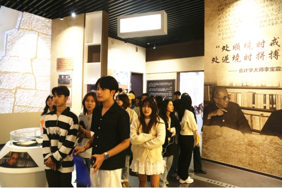 随后,讲解员团队带领留学生们参观了杨曾武、李宝震先生展馆。两位先生为天财建设与发展献出了毕生心血,以严谨治学的教育家精神深深影响着天财的后辈师生。悠久的校史就是最好的国情教育教科书,讲解员从天财两位大师的成就讲到中国教育家精神,从“一带一路”倡议讲到“人类命运共同体”理念,留学生们感受到中国师者大公无私的情怀和一丝不苟的治学态度,以身在天财求学为荣,希望能在学成之后奉献社会,做人类命运共同体的践行者。