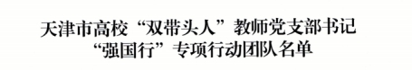 高校“双带头人”教师党支部书记“强国行”专项行动(以下简称“强国行”专项行动)是教育部为创新落实立德树人根本任务,深入贯彻落实教育部党组关于高校“双带头人”教师党支部书记(以下简称高校“双带头人”)培育工作的部署要求,充分发挥高校“双带头人”的示范引领作用,引导广大师生在以中国式现代化全面推进强国建设、民族复兴伟业新征程上砥砺新担当、展现新作为,组织开展的一项专项行动。主要聚焦国家发展战略和地方经济高质量发展,组织开展党建联建、提供教育服务、推动科技赋能、深化实践育人4项重点任务。市教育两委同步开展了天津市“强国行”专项行动。