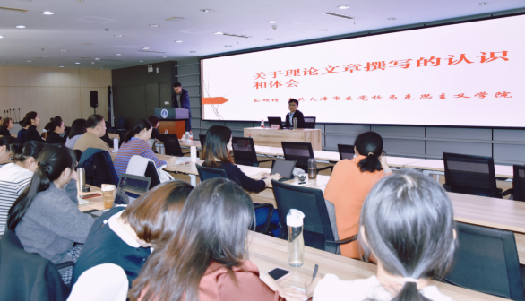 孙明增以“关于理论文章撰写的认识和体会”为题,从“文无定法”引入,介绍了理论文章与学术文章的鲜明特征,详细阐述了“如何写出好的理论文章的标准及路径”。他结合自身发表理论文章的经历和心得,从题目、帽段、提纲、材料、末段、文笔六个方面,对如何撰写高质量的理论文章作了精彩分享。他建议师生多读经典文献和学术文章,不断从新角度看问题,增强文章创新性。