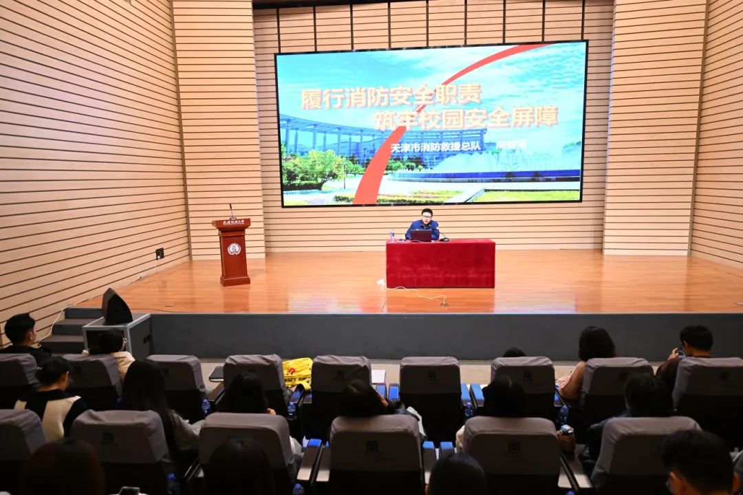 天津财经大学党委书记赵鸣对本次活动表示了热烈欢迎并介绍了学校消防工作开展情况。天津市委教育工委专职副书记孙志良为学校校园微型消防站代表授牌。启动仪式上还播放了消防安全警示教育片,并邀请了天津市消防救援总队专家从日常管理、隐患分析、检查要点、火场求生方式等方面,为在座师生讲解消防安全工作的薄弱环节,帮助大家提升安全意识,强化火灾风险防范能力。