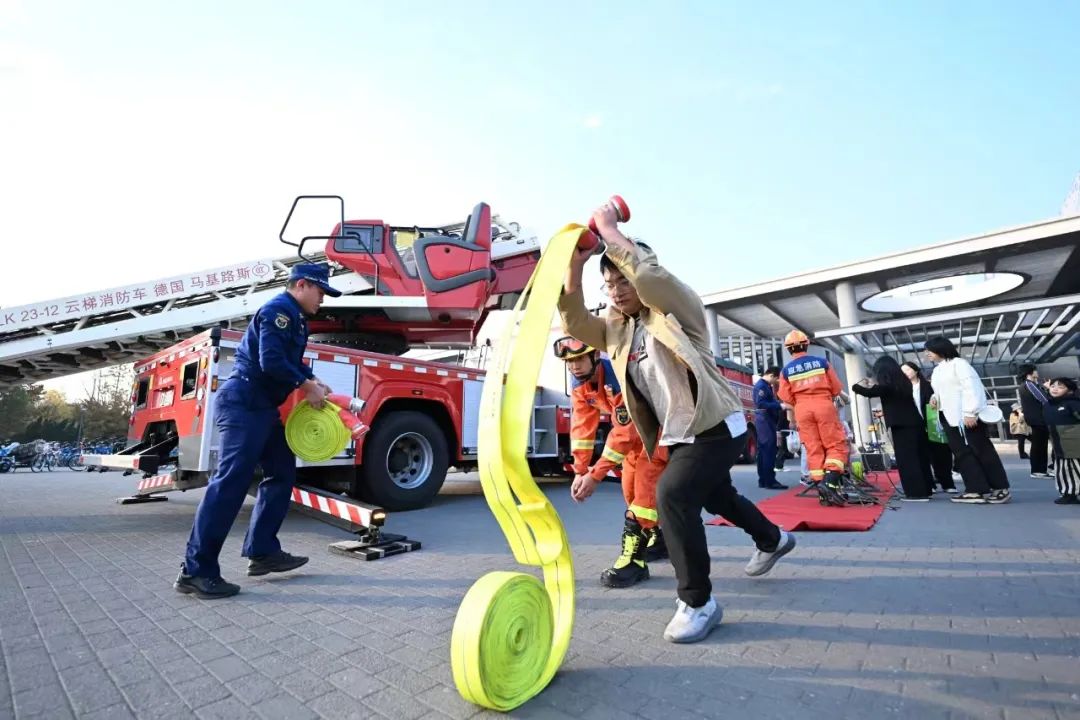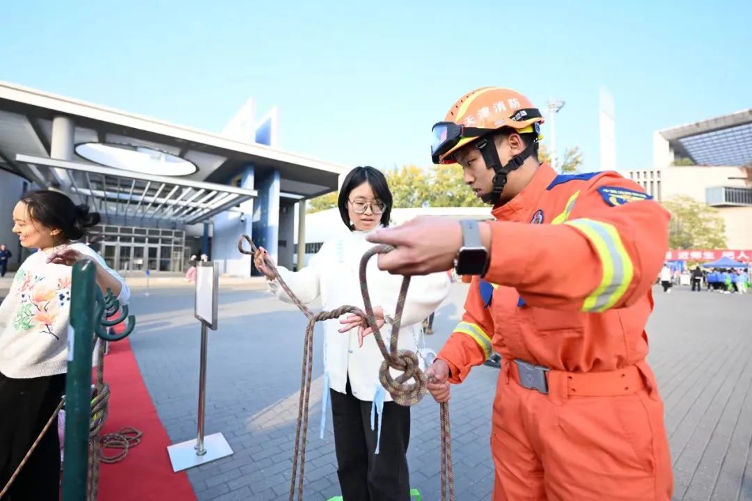 启动仪式后,与会人员和师生员工代表还参与了各类消防观摩体验活动。体验活动设置了消防安全、用电安全、疏散逃生、地震体验、生活急救等互动专区。由国家消防救援局天津机动支队、河西区消防救援支队、应急管理部天津消防研究所、天津蓝天救援队选派应急安全专家进行现场讲解。通过互动体验、观看救助演示、实操消防装备等方式,让师生近距离感受应急安全文化,在寓教于乐中学习各种安全应急处置技能,提升避险逃生能力。