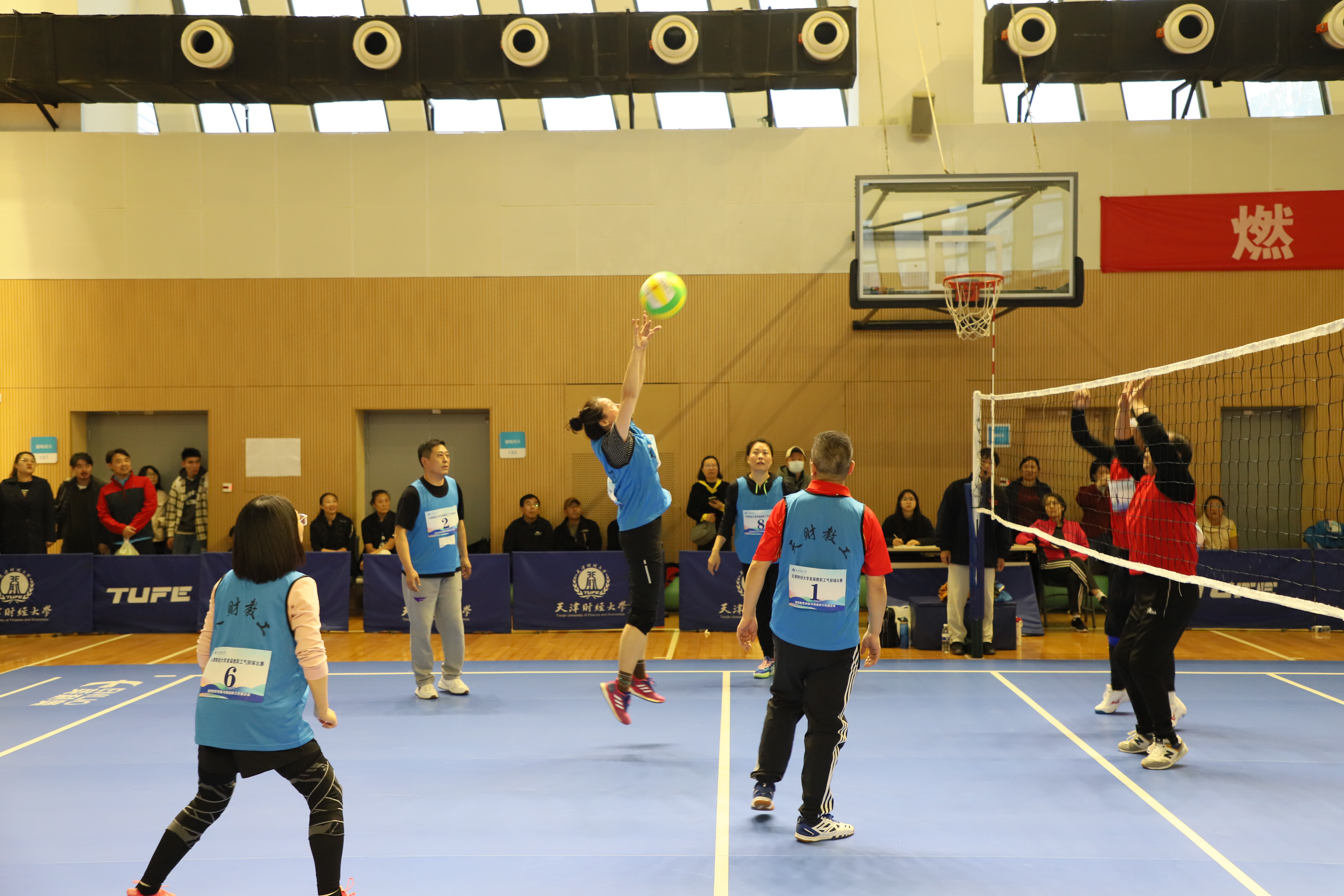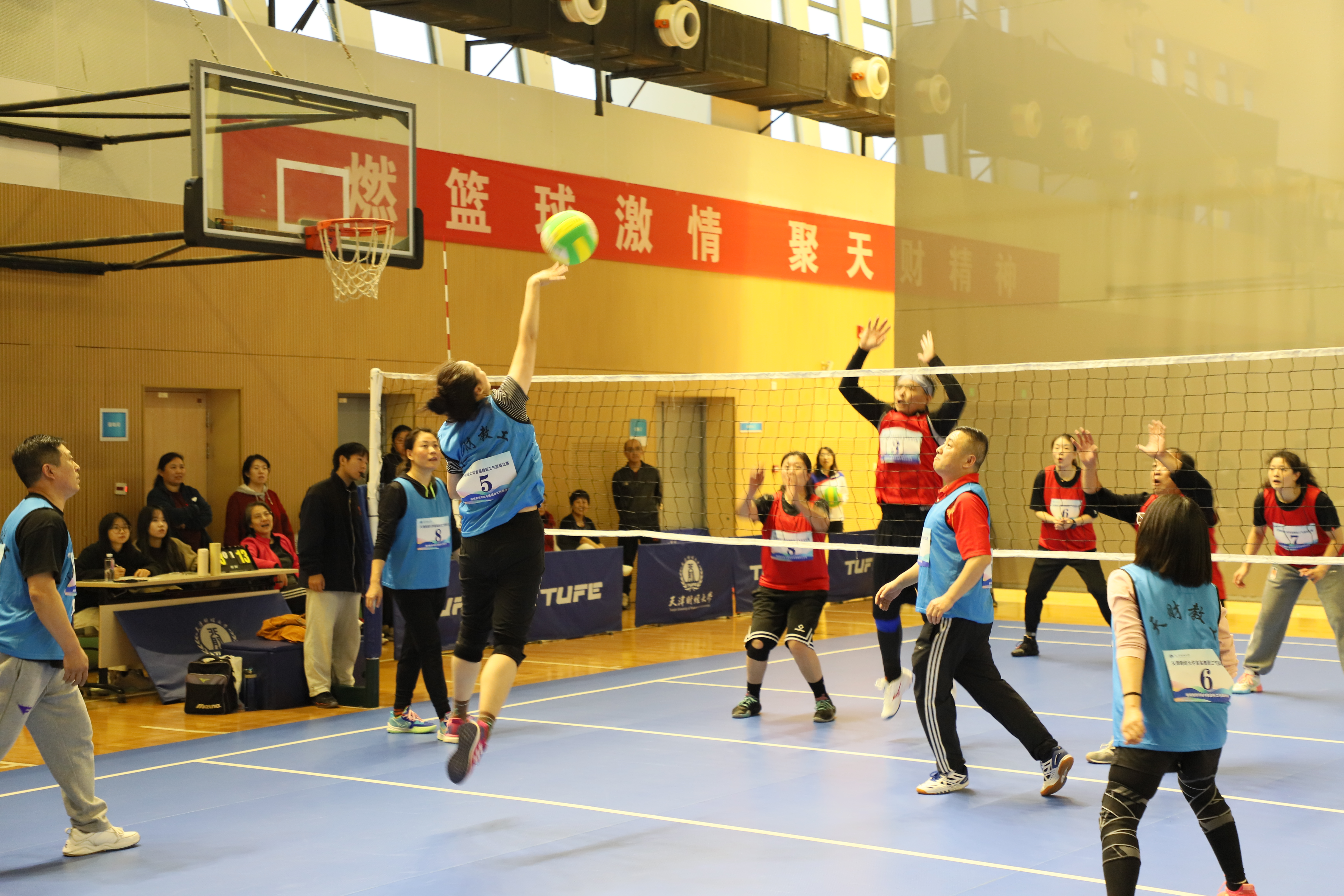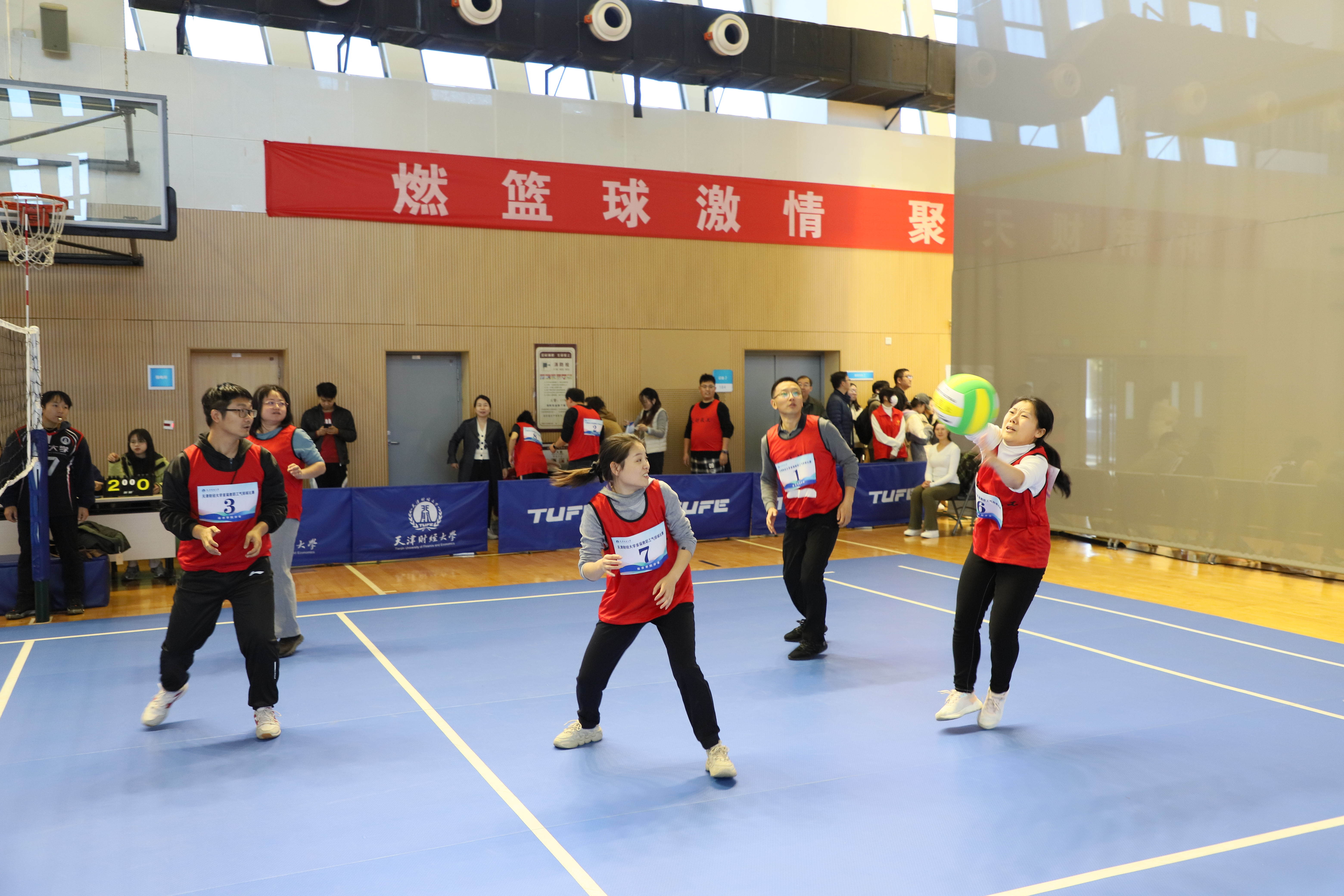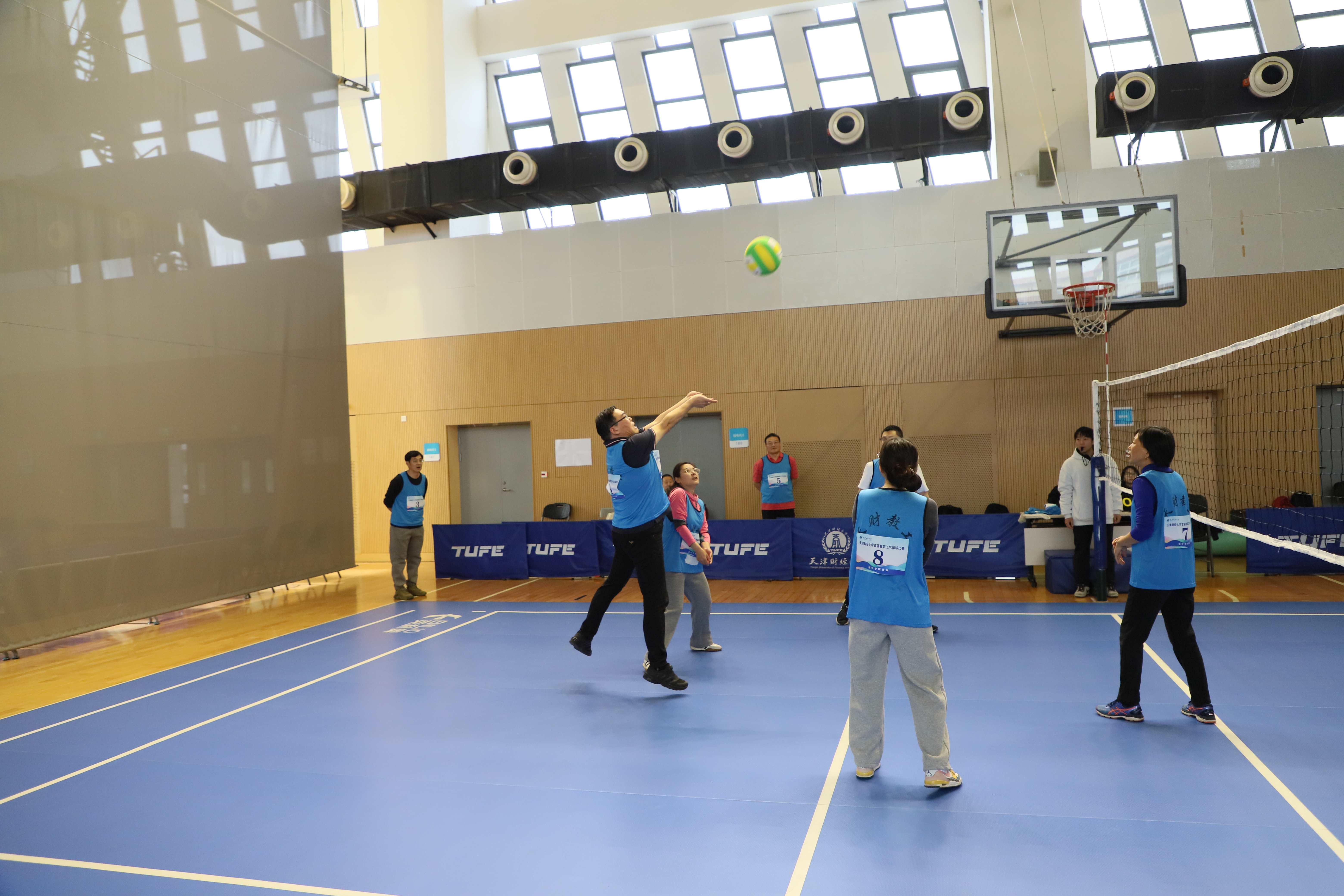 为进一步活跃教职工体育活动,推广气排球运动在我校发展,丰富社团文化生活,增进各分会间联系交流,营造和谐共进的文化氛围,校工会联合体育教学部、教职工气排球协会共同举办“气”贯长虹 ·激情澎“排”天津财经大学首届教职工气排球比赛。比赛于11月4 日在我校综合体育馆火热开哨,伴随着热情洋溢的掌声和活力四射的呐喊声,于11月22 日圆满落幕。