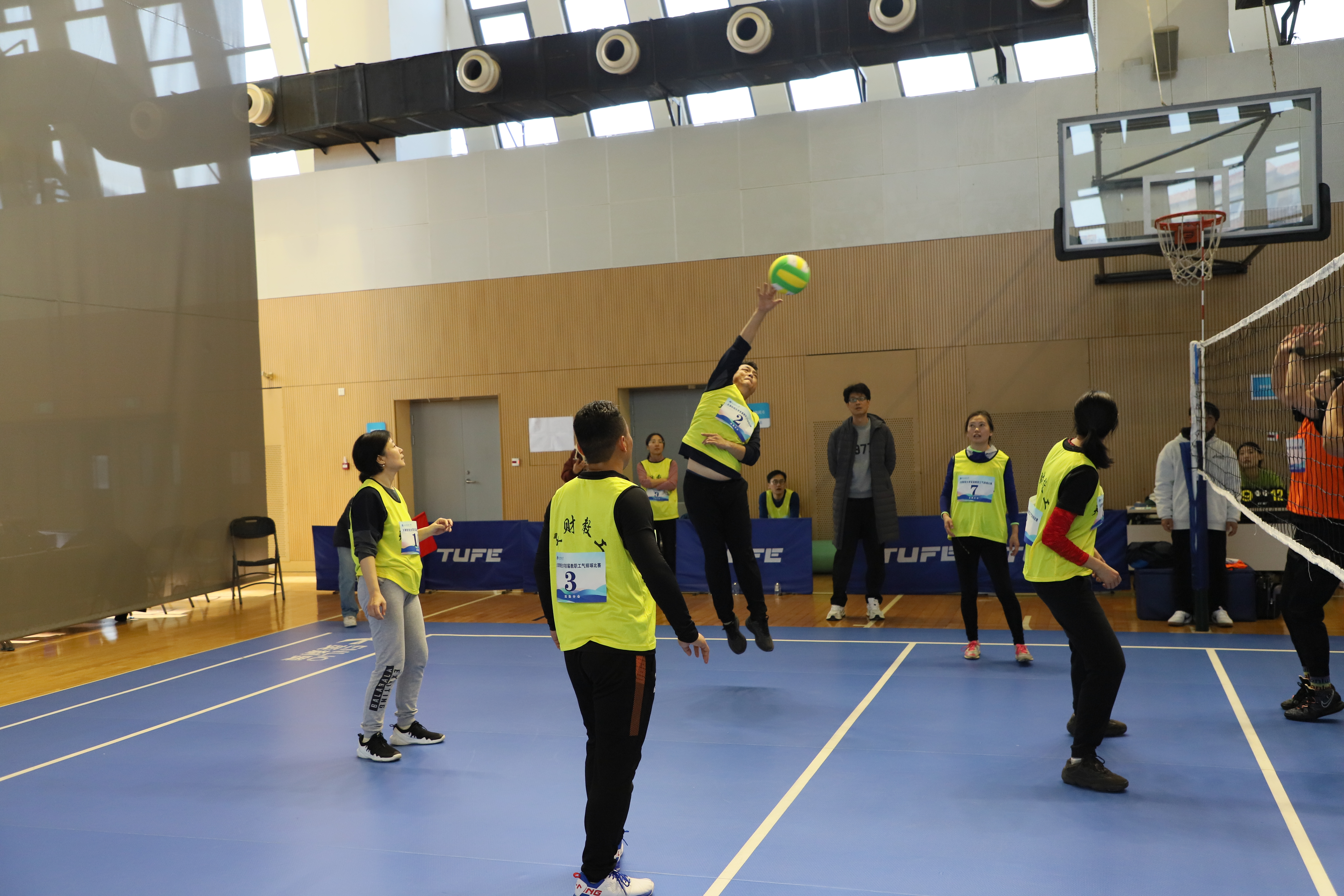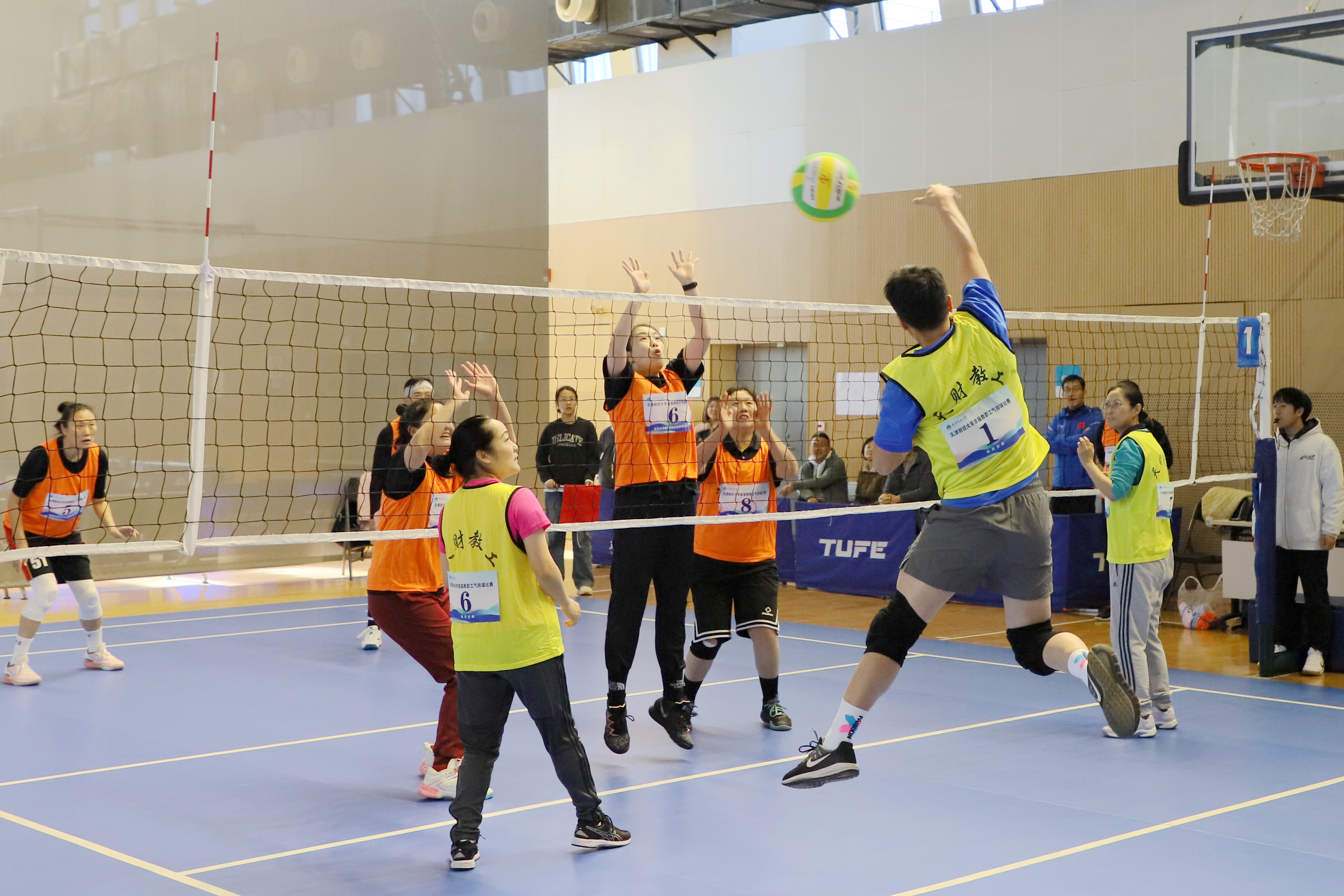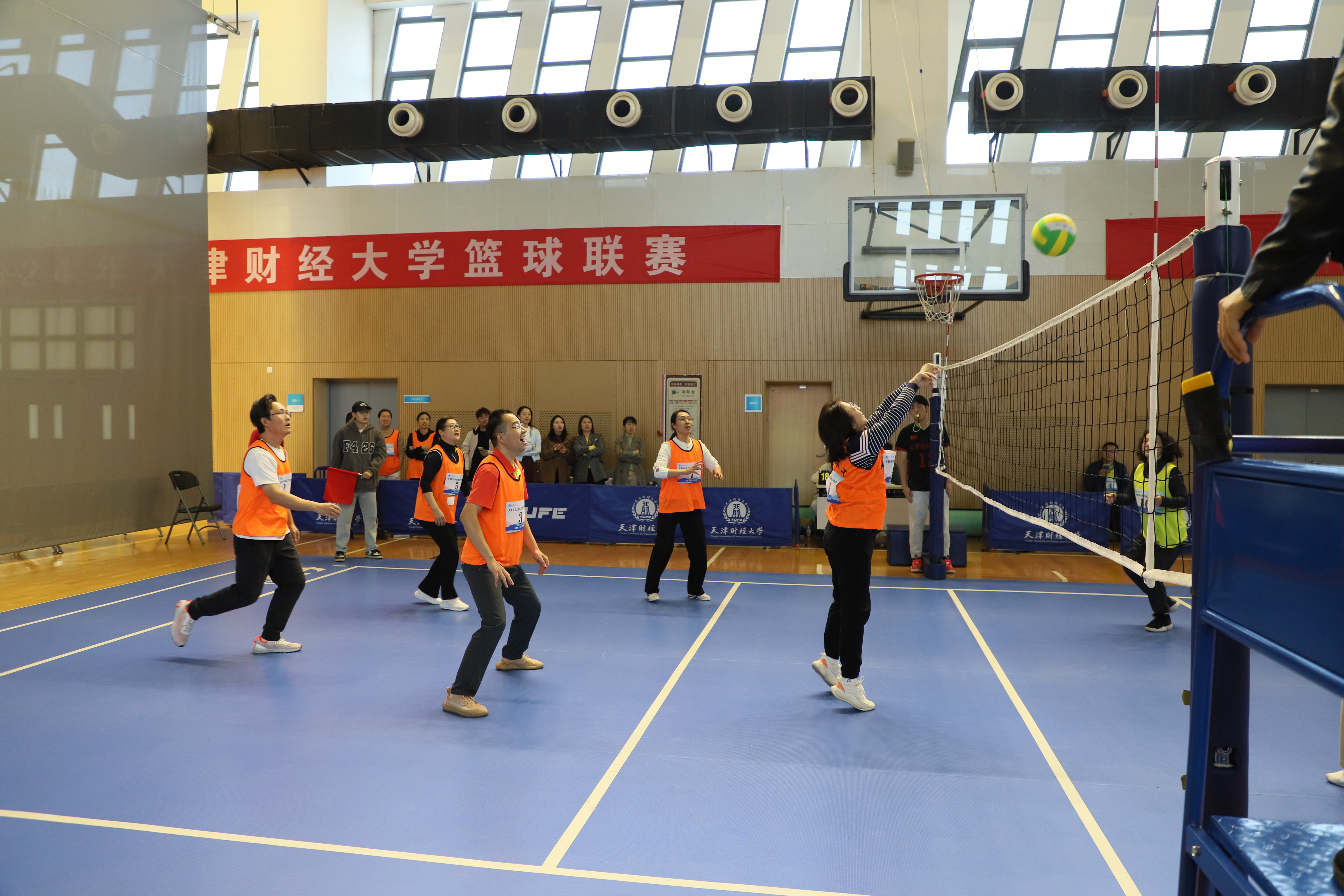 为进一步活跃教职工体育活动,推广气排球运动在我校发展,丰富社团文化生活,增进各分会间联系交流,营造和谐共进的文化氛围,校工会联合体育教学部、教职工气排球协会共同举办“气”贯长虹 ·激情澎“排”天津财经大学首届教职工气排球比赛。比赛于11月4 日在我校综合体育馆火热开哨,伴随着热情洋溢的掌声和活力四射的呐喊声,于11月22 日圆满落幕。