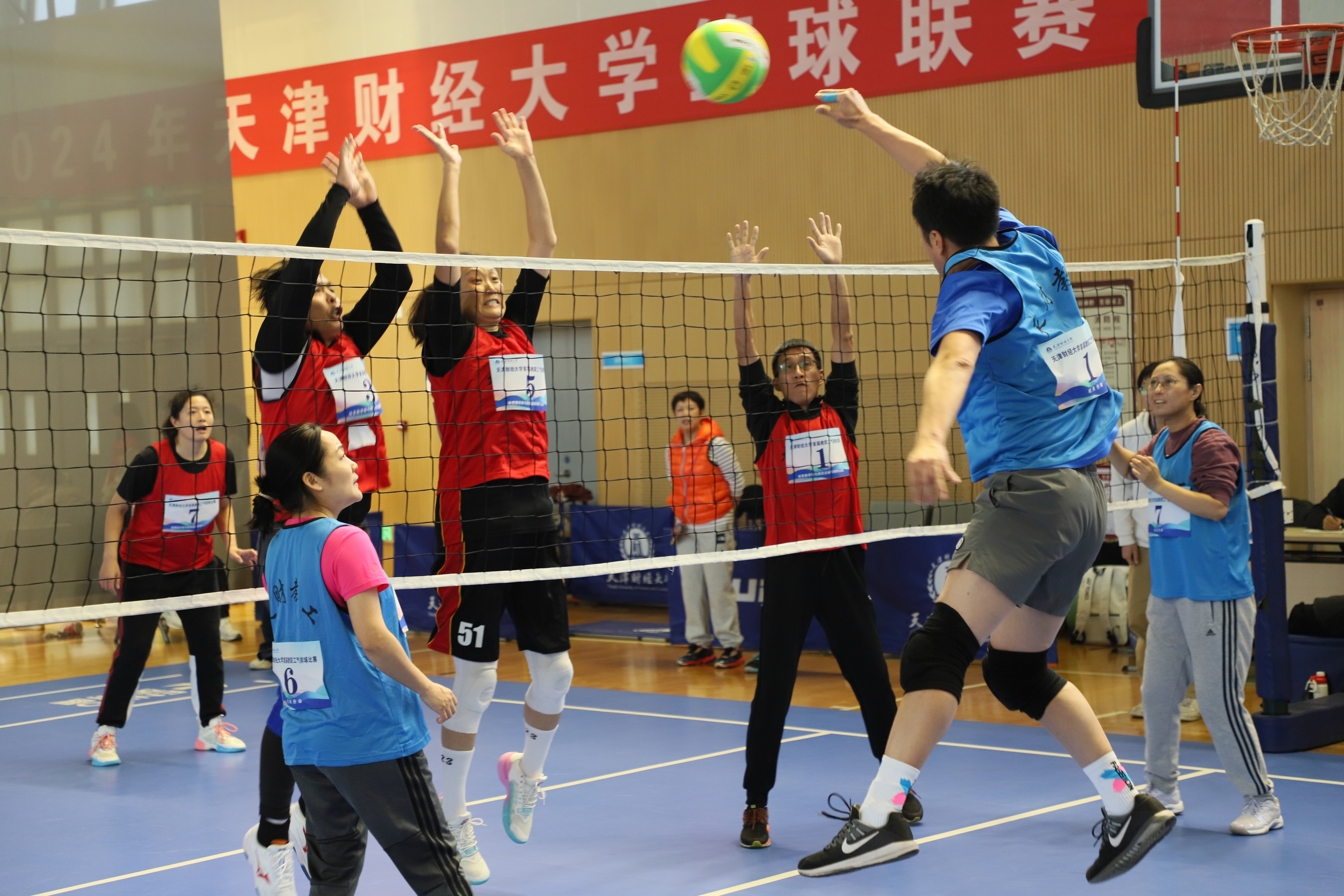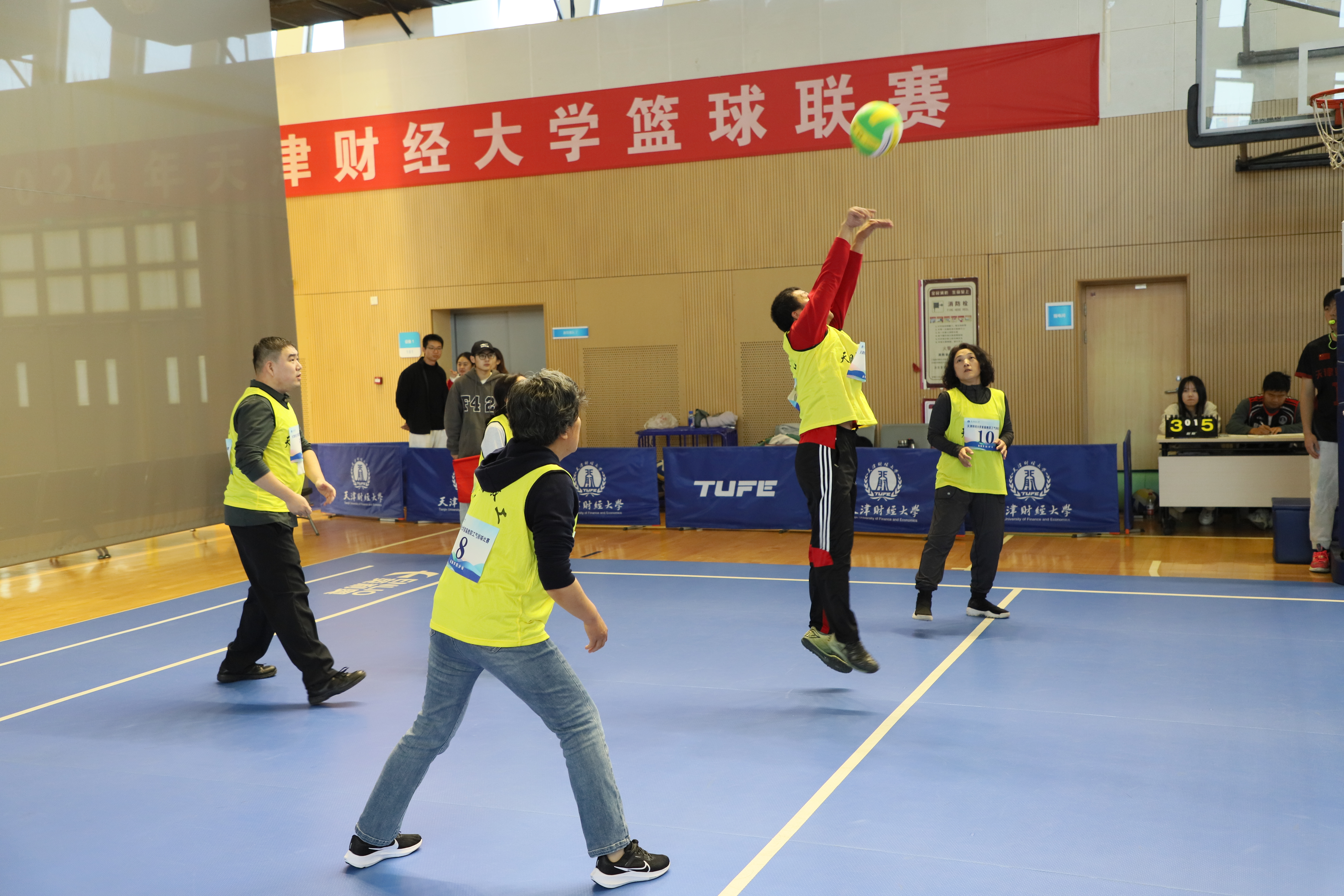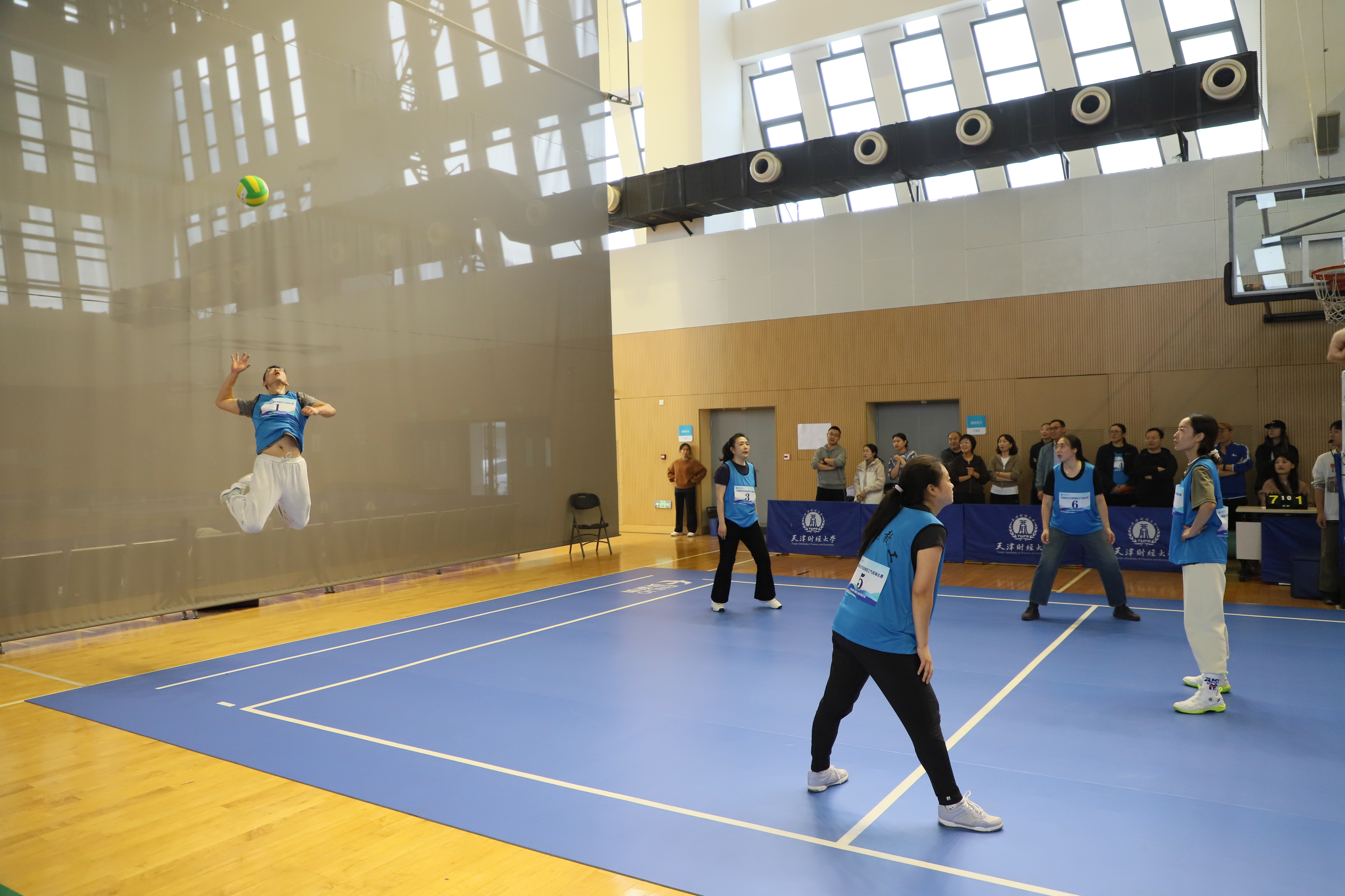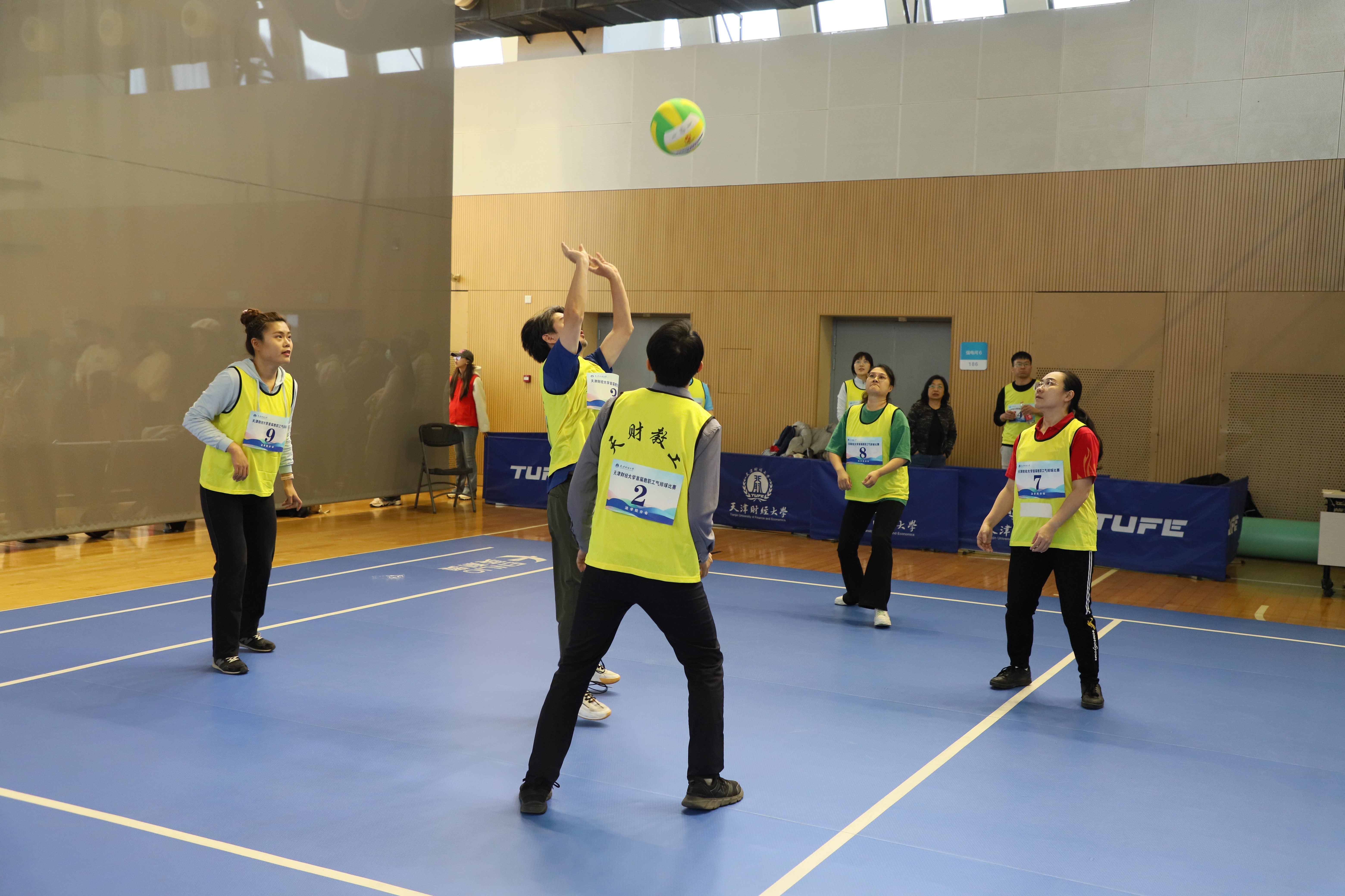 为进一步活跃教职工体育活动,推广气排球运动在我校发展,丰富社团文化生活,增进各分会间联系交流,营造和谐共进的文化氛围,校工会联合体育教学部、教职工气排球协会共同举办“气”贯长虹 ·激情澎“排”天津财经大学首届教职工气排球比赛。比赛于11月4 日在我校综合体育馆火热开哨,伴随着热情洋溢的掌声和活力四射的呐喊声,于11月22 日圆满落幕。
