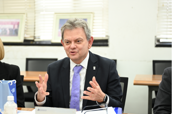11月26日,天津财经大学与格拉斯哥大学校际合作会议在我校举行。校党委书记赵鸣、副校长李新涛,格拉斯哥大学校长安顿·马斯卡泰利、副校长雷切尔·桑迪森,国际事务部门、社会科学学院亚当·斯密商学院、法学院、社会与环境可持续系等负责人,以及我校商学院、财税与公共管理学院、法学院、国际交流与合作处负责同志与教师代表出席会议并座谈。