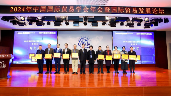 2024年11月22-23日,中国国际贸易学会年会暨国际贸易发展论坛在对外经济贸易大学隆重举行。本届年会以“建设更高水平开放型经济新体制”为主题,并进行了2024年中国国际贸易学会“中国外经贸发展与改革”征文的颁奖仪式。本年度征文活动共收到来自全国各省、自治区、直辖市征文投稿184篇,共评出论文一等奖3篇,二等奖6篇,三等奖19篇。我校经济学院精心组织,共有5篇论文分别获得一、三等奖和优秀奖,并获征文组织奖。作为中国国际贸易学会常务理事单位,经济学院长期积极参与中国国际贸易学会组织的高水平学术活动,已经连续多年获得学会征文的组织奖,在国内高水平学科平台上很好地展示了我校师生的研究水平,并以此为平台带动研究生关注学科发展前沿,积极参与科研。