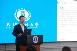 本次研讨会主题是“新时代信用管理专业人才的需求和培养”,分为主旨演讲和圆桌会谈两个环节。主旨演讲环节由金融学院副院长周远主持。在主旨演讲的“行业前沿”模块,联合赤道环境评价股份有限公司副总经理刘景允分享了双碳目标下转型金融探索发展与实践,天津征信有限公司董事长兼总经理王光远分析了数据要素在普惠金融领域的价值实现,天津海扬科技有限公司董事长齐彪阐述了信用风险管理与金融科技的应用,财新数据高级商务总监王俊海介绍了财新数据的创新实践应用,天津市信用协会副会长兼秘书长、海河信用创新实验室主任王盟汇报了行业协会和海河信用创新实验室的创新实践工作。在主旨演讲的“教育教学创新”模块,南京审计大学信用管理系主任肖振宇分享了信用管理国家级一流本科专业的建设经验,西南财经大学金融学院薛舒予汇报了信用评级课程改革与创新情况,我校金融学院信用管理系主任刘久彪介绍了信用管理专业思政教育的开展情况和经验。