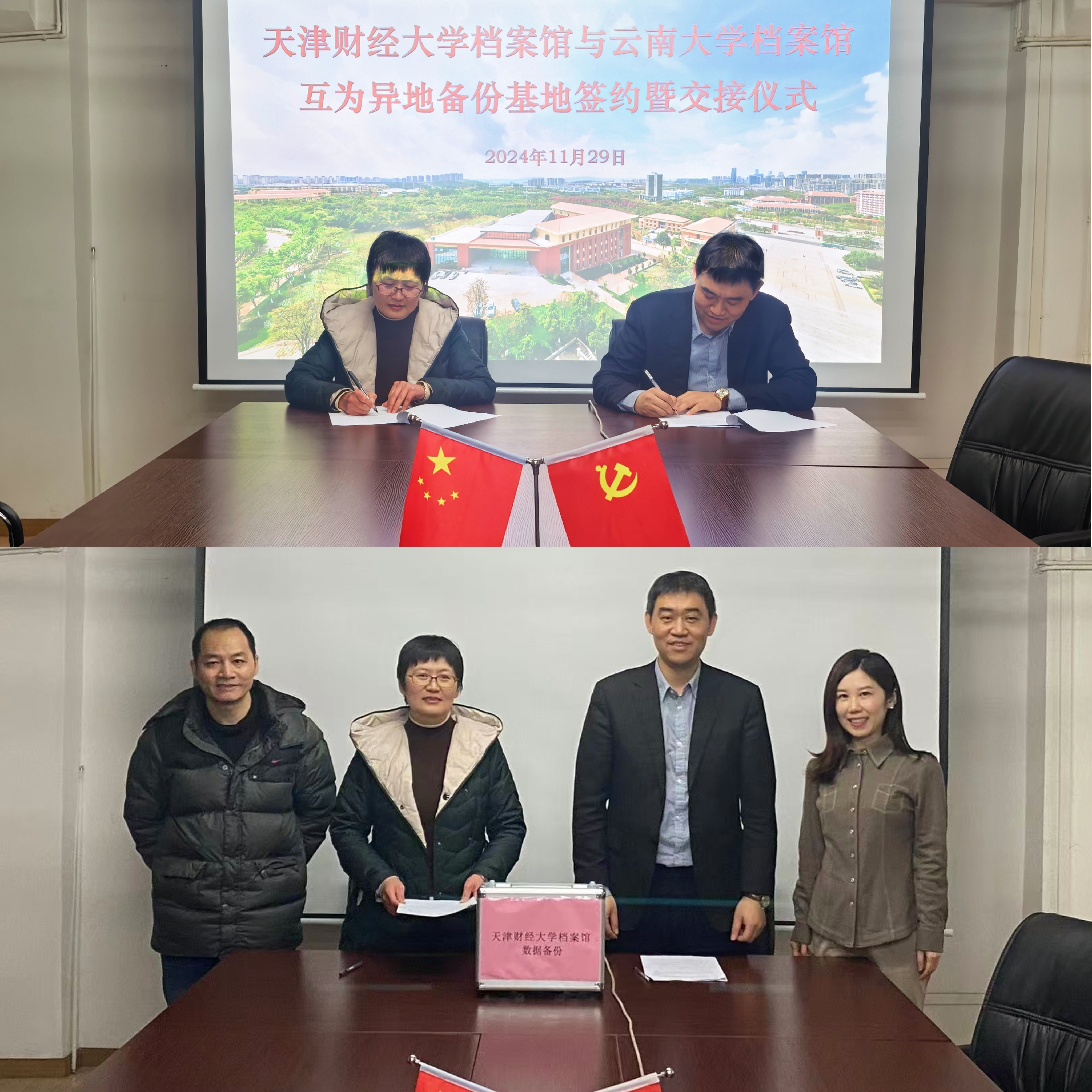 为深入贯彻落实习近平总书记关于做好新时代档案工作的重要指示批示精神,学校档案馆以扎实推进市档案局、市教委有关工作部署要求为契机,推动完善安全保密工作制度体系,升级安全保障环境,配齐符合档案保管和数字化加工条件的软硬件设备设施,全方位提升档案安全管理水平,尤其是电子档案数据安全管理水平。近日,档案馆一行3人赴云南大学档案馆,就双方互为馆藏重要电子档案数据异地备份基地签订协议,并完成学校馆藏重要电子档案数据异地备份工作。此项工作的开展,开创了我市高校档案异地备份工作的先河。
