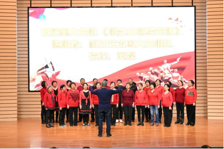 合唱队在董磊老师的指挥下,压轴上场并献上了无伴奏大合唱《唱支山歌给党听》《七律 长征》,将整场汇报演出推向了高潮。