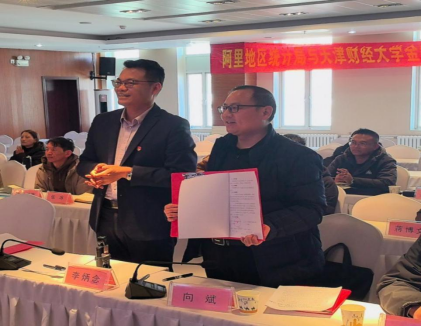 在双方相关领导见证下,金融学院、统计学院与阿里地区统计局签署战略合作框架协议。未来双方将充分发挥各自优势,围绕金融和统计人才培养、联合科研、实习实践基地建设等方面展开全方位深度合作,助力我校学科发展和阿里地区经济社会高质量发展。