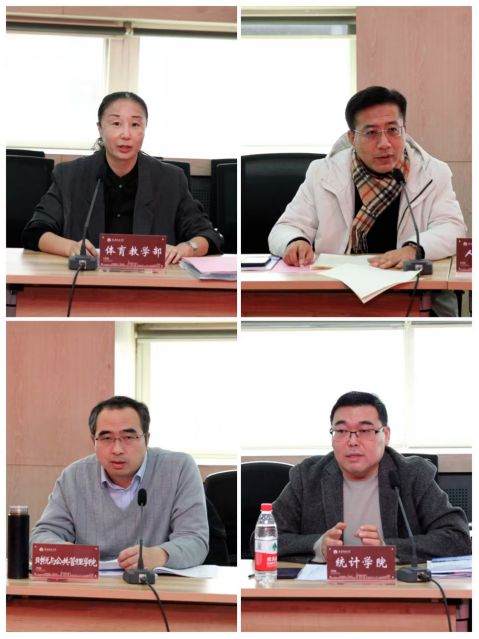 会上,体育教学部主任智萱、人文学院新闻与文化传播系主任李然、财税与公共管理学院副院长刘志辉、统计学院党委书记王健分别就我校体育育人和体育文化建设工作、美育教学研究中心工作、“劳动创造美好生活”课程建设以及统计学院拓宽体育、美育、劳动教育渠道,引领青年学子锤炼专业本领取得的成绩进行了汇报交流。