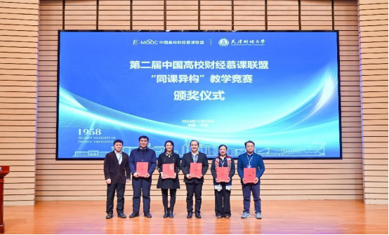 中国高等教育学会高等财经教育分会财经慕课联盟为组织工作突出的江西财经大学、浙江财经大学、对外经济贸易大学、安徽财经大学、天津财经大学颁发了优秀组织奖