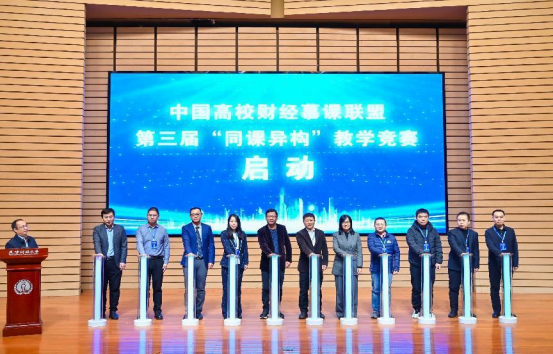 对外经济贸易大学教务处处长毛捷教授主持颁奖环节。江西财经大学教务处处长万建香教授作赛事总结。中国高校财经慕课联盟秘书长、西南财经大学教务处处长汤火箭教授主持第三届“同课异构”教学竞赛启动仪式,2025年中国高校财经慕课联盟第三届“同课异构”10门课程教学竞赛正式拉开帷幕。
