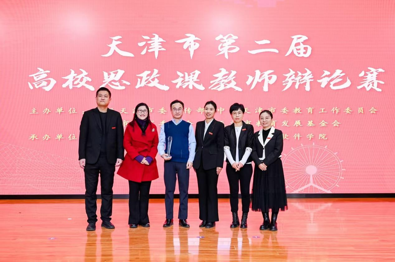 为深入学习和贯彻习近平总书记关于学校思政课建设的重要指示精神,引导高校思政课教师聚焦教学质量提升,深化新时代思政课改革创新,天津市委宣传部、市教育两委联合举办天津市第二届高校思政课教师辩论赛,马克思主义学院认真组织,遴选郭方园、刘芳、李玉祥、于阳阳等四位青年教师组成辩论队,并聘请金雪飞、潘彩霞任指导教师。