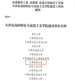 为深入贯彻全国教育大会精神和习近平总书记关于思政课建设重要指示批示精神,引导各高校结合学校办学特点、学科专业特长、思政课建设特色,深化新时代马克思主义学院建设,着力打造具有全国影响力辐射力的特色思政课品牌,市委宣传部、市教育两委决定在全市高校建设一批特色马克思主义学院。经申报、推荐、评审等程序,我校成功入选天津市高校特色马克思主义学院建设单位,建设周期为3年。这是继入选天津市重点马克思主义学院建设单位并以“优秀”结项后,在新征程中取得的新成绩。