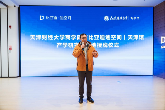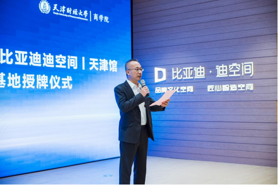 刘玉斌在致辞中指出,在国家大力倡导产教融合的时代背景下,商学院积极响应政策号召,与比亚迪迪空间丨天津馆合作建立产学研实践基地,这是深化教育教学改革、推动产教融合迈向新高度的关键举措。通过搭建产学研实践基地,旨在打通教育链、人才链与产业链、创新链之间的壁垒,实现有机衔接,着重培养兼具创新精神与实践能力的高素质应用型人才。