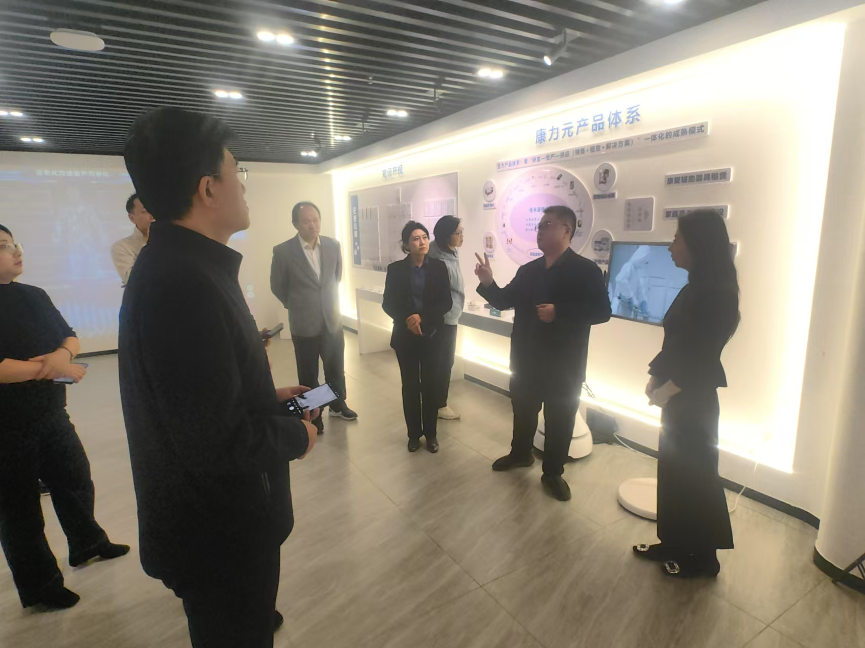 在小橙集团数字化养老展厅,全面了解了企业发展历程、经营模式与数字养老发展情况,特别是针对企业数字化管理平台建设、智慧养老产品设计研发与企业进行了互动交流。随后,河西区科技局、天津财经大学与小橙集团共同召开政产学研座谈会。
