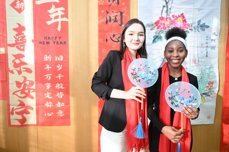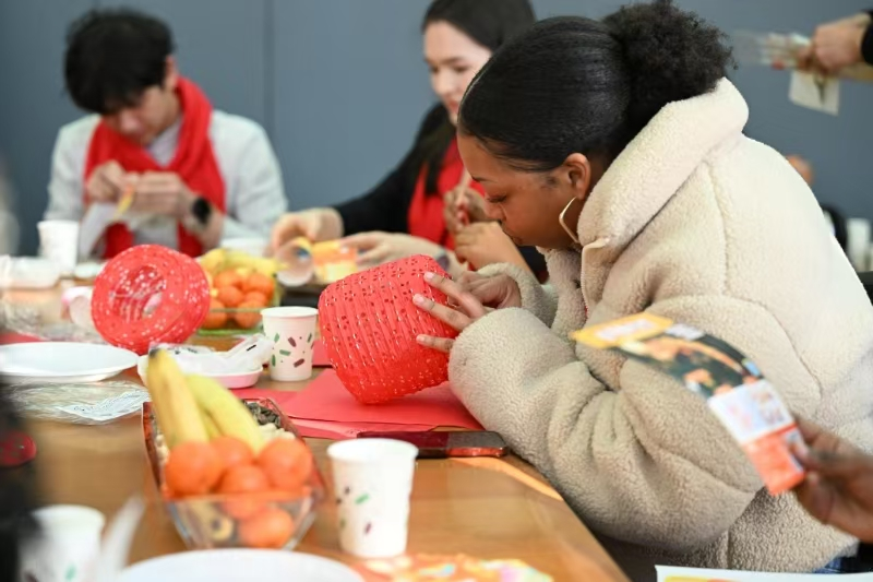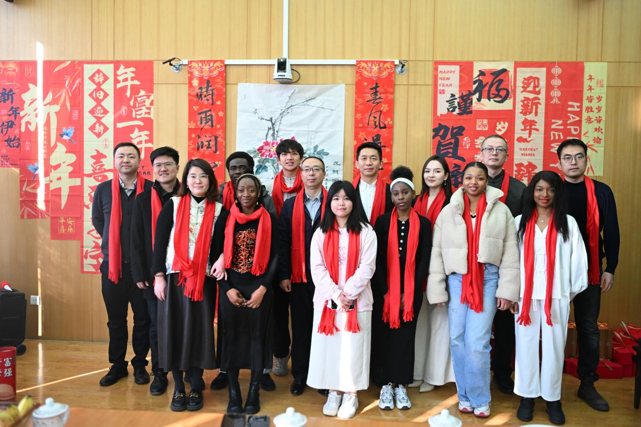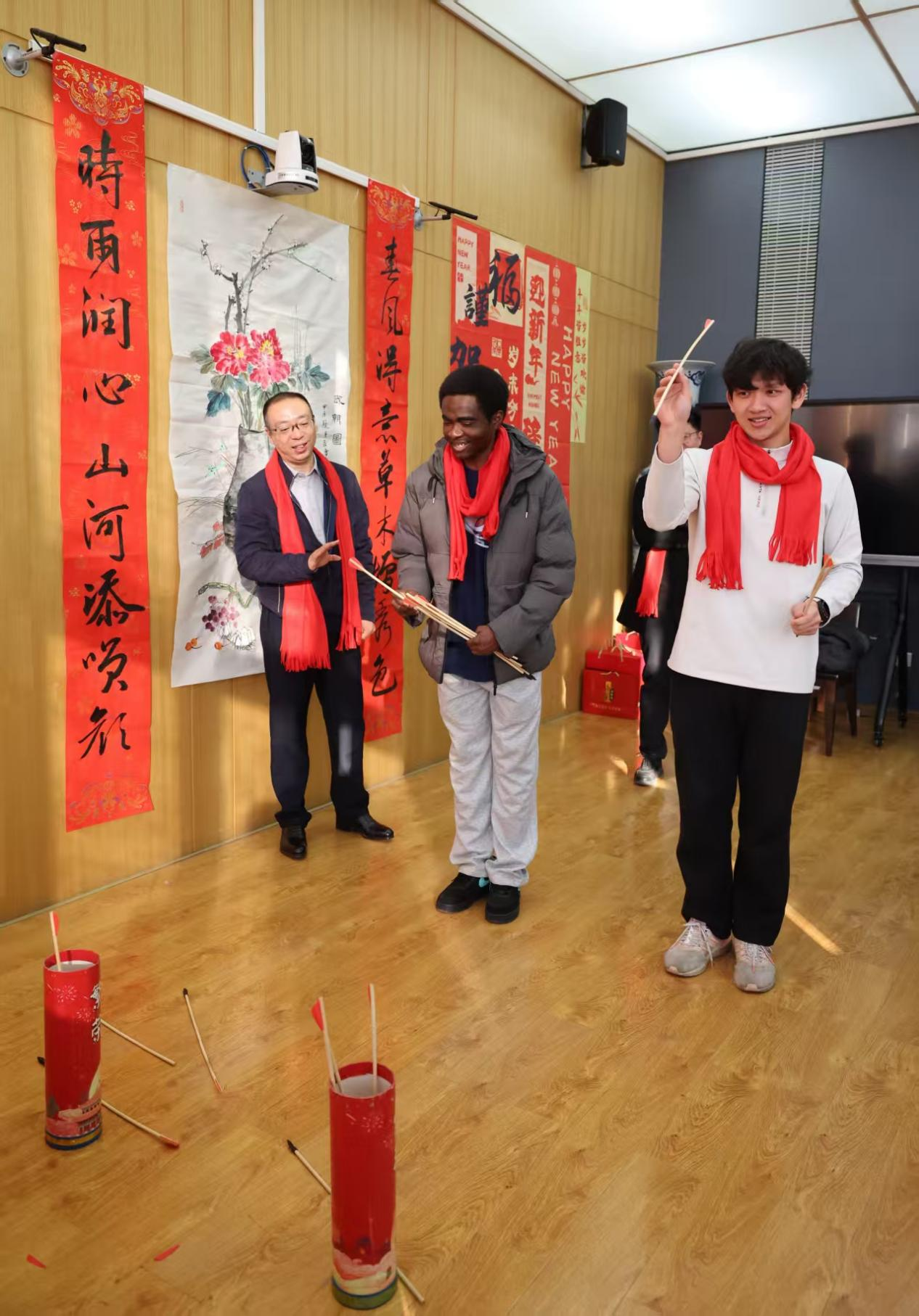 1月20日下午,一场别开生面的来华留学生新春年俗文化体验活动在国际教育学院会议室举行,校长孟昊、副校长李新涛与学院师生一起写福字、做灯笼、剪窗花、赏年画、玩投壶等,共同探寻非遗魅力,在欢声笑语中迎接新年的到来。来自赤道几内亚、加蓬、乌兹别克斯坦、马来西亚、泰国的来华留学生在浓浓年味中,沉浸式体验中国传统文化。