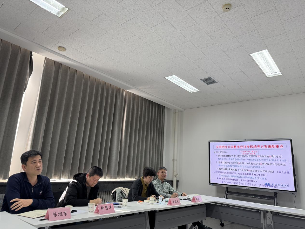为全面推进数字经济专业硕士研究生学位点建设,充分发挥我校学科交叉融合优势,数字经济与管理学院于2025年1月15日举办天津财经大学数字经济专硕(MDE)工作推动会。研究生院副院长陆建明、商学院院长张建宇、经济学院院长齐俊妍、统计学院院长杨贵军、财税与公共管理学院院长陈旭东应邀参会。