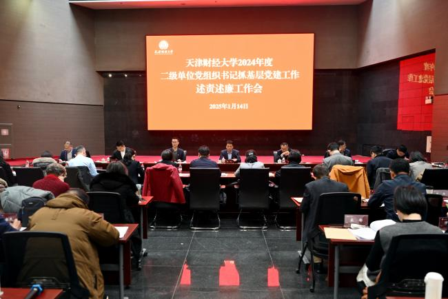 会上,机关党委、商学院党委、经济学院党委、管理科学与工程学院党委、统计学院党委、国际工商学院党委、数字经济与管理学院党总支、体育教学部党总支共8位党组织书记就2024年度抓基层党建工作情况进行了现场述职,赵鸣书记结合各单位党组织书记述职和工作实际,逐一进行了点评,明确指出了存在的问题并对加强基层党建工作做了有针对性的指导,其他二级单位党组织书记作了书面述职。随后,2名校党委班子成员和14名基层单位党政主要负责同志分别采用口头和书面的形式进行述责述廉。派驻纪检监察组组织各基层纪委书记(纪检委员)围绕全面从严治党主体责任落实、廉政风险点防控、廉洁文化建设等方面进行了现场提问,有效传导责任压力。与会人员听取述职和述责述廉后,分别对21个二级单位党组织书记或党组织进行了民主评议,对16名述责述廉对象进行了民主测评。