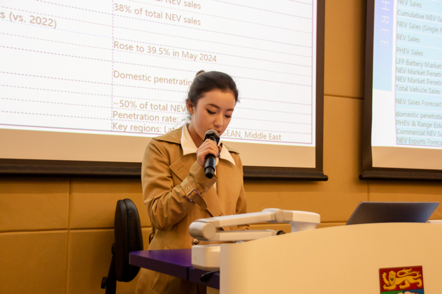 1月24日的结业汇报会成为访学成果的集中展示。学生团队以“中国新能源汽车可持续投资战略”为题,运用课程所学的SWOT-PEST整合分析模型,提出“碳积分金融化”“电池回收证券化”等创新方案。港大评审教授高度评价其“数据支撑扎实、商业洞察敏锐”,肯定了骆添和谢婧愉等同学在行业趋势分析与战略建议中展现的专业素养。最终,王心仪同学凭借全程优异表现获得港大教授亲笔推荐信,为未来深造奠定基础。