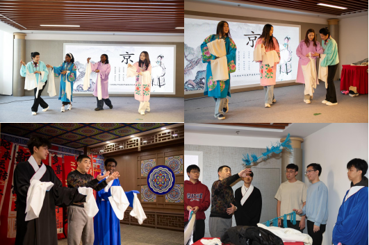 为了让留学生们更直观地感受京剧文化,老师们还带来了京剧表演中常用的道具与服饰,如折扇、水袖、马鞭、厚底靴等,邀请留学生们上台互动体验。在老师们的指导下留学生们尝试了京剧的基本动作和唱腔。来自乌兹别克斯坦的留学生迪诺拉表示:“这次活动让我对中国京剧文化有了全新的认识,也让我更加尊重和欣赏世界不同文化的多样性。”