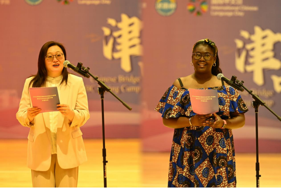 仪式尾声,中英学子双语演唱《友谊地久天长》,歌声余音绕梁,相机定格下张张笑脸——这一刻,“汉语桥”化作津门春日里最温暖的阳光,照亮中外青年共同前行的道路。