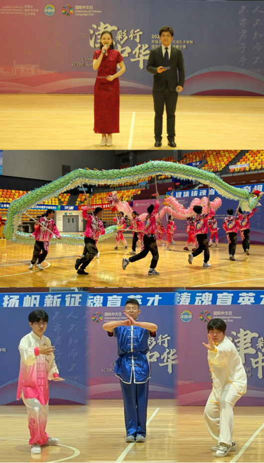 随后,一场震撼人心的舞龙舞狮与武术表演将气氛推向高潮。金龙翔空,雄狮腾跃,拳法如龙,这跃动不仅是中华传统文化的精魂所在,更是中外青年心灵相通的时代节拍。正如中外学生主持人所说“今天,我们不仅在搭建语言的桥梁,更是在编织友谊的纽带。”