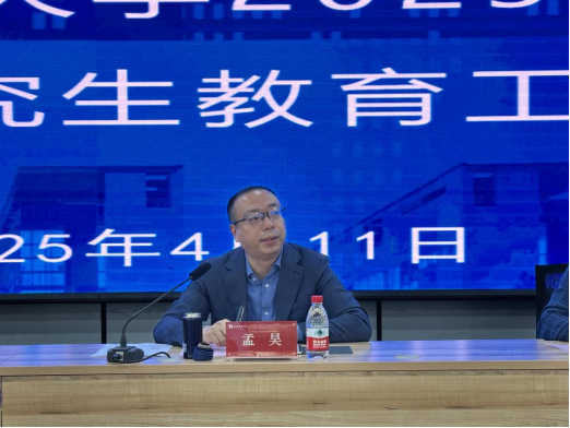 2025年4月11日,我校召开2025年度学科建设与研究生教育工作推动会。校党委副书记、校长孟昊出席会议并讲话,校党委常委、副校长马亚明、各学院院长、主管研究生教育的副院长、各专业学位点负责人、研究生导师代表以及研究生院(学科办)工作人员参加本次会议。会议由研究生院(学科办)院长(主任)刘玉斌主持。