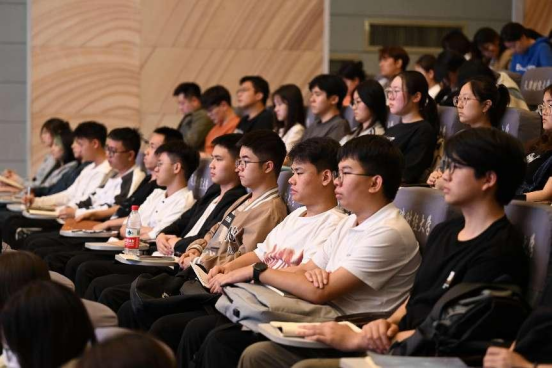 孟昊从“全球贸易秩序重构”切入,以“全球格局-中国经济-青年担当”的逻辑主线展开,分别就“特朗普关税战的悖论”“中国经济:短期承压与长期韧性”“确定性趋势与脆弱性挑战:全球预警”“中国的战略选择:从防御到引领”“大海的定力与人类的远见”“给青年学子的建议”等六个方面为同学们进行了系统全面的讲解。课程紧扣全球经济变局与中国应对策略,深入浅出地解析了中国经济的韧性密码。同时,孟昊结合高等教育时代使命和教育强国的新篇章,为“新财经”人才如何锻造核心竞争力指明了方向。