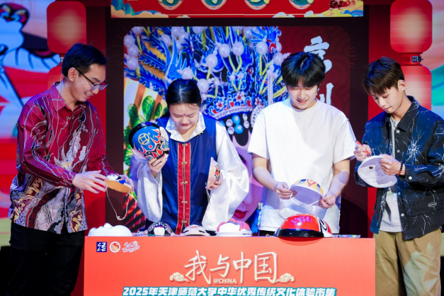 我校留学生黄培祥和彭俊辉在展演现场参加非遗市集游园会