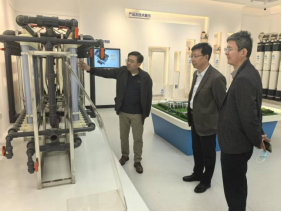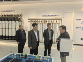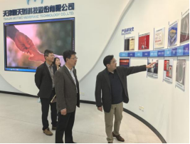 在范宁的带领下,韩少波一行首先参观了企业展厅,了解了津膜科技的发展历程、核心技术、主营产品以及在水处理领域取得的显著成就,对企业的创新能力和行业影响力有了直观认识。